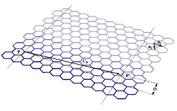 Aby wyjaśnić, w jaki sposób definiuje się rodzaj nanorurki, należy bezpośrednio przyjrzeć się pojedynczemu arkuszowi grafitu i jak został on zwinięty. Płaszczyzna grafitu powstaje przez wielokrotną translację podstawowej komórki. Tak zwany wektor chiralny, Ch, definiowany jako
